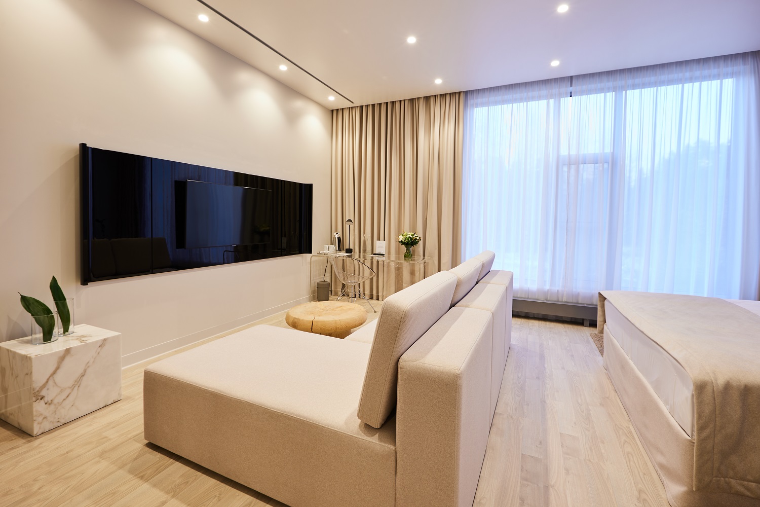 Оттенок Дуб Песочный идеально подходит для небольших комнат — такие молочные тона прекрасно расширяют пространство, добавляя комнате света и тепла.